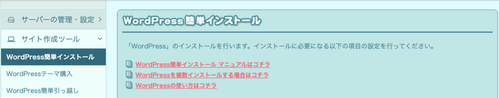契約後、管理画面に入ることができます。管理画面のメニューから簡単インストール機能を使います。