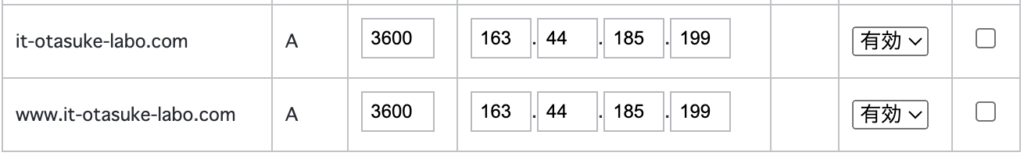 wwwありのドメインでロリポップのグローバルIPアドレス向けにAレコードを設定